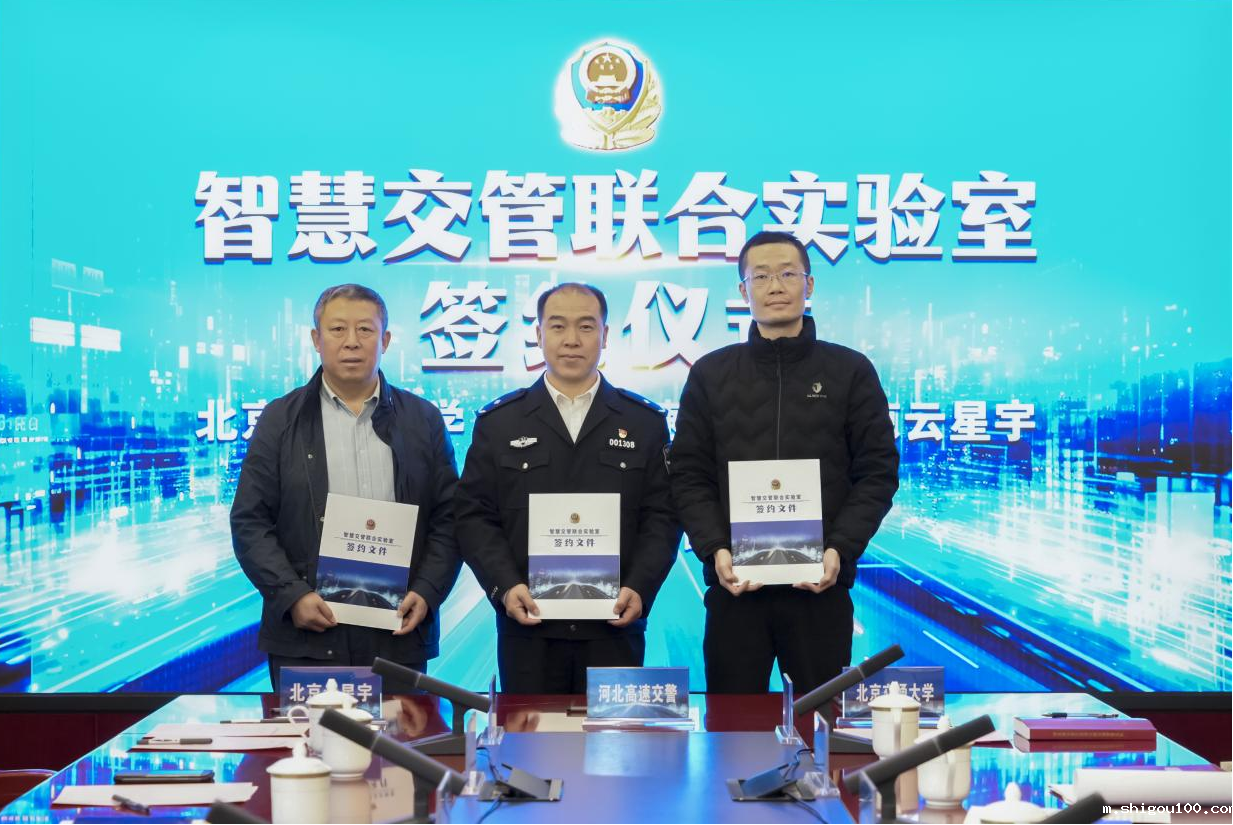 2024年11月26日上午,交通运输学院与河北省公安厅高速公路交通警察总队、北京云星宇交通科技股份有限公司在石家庄顺利举行了“智慧交管联合实验室”签约仪式。交通运输学院副院长唐源洁、河北高速交警总队总队长张凤龙、云星宇公司董事长王占军等出席签约仪式。